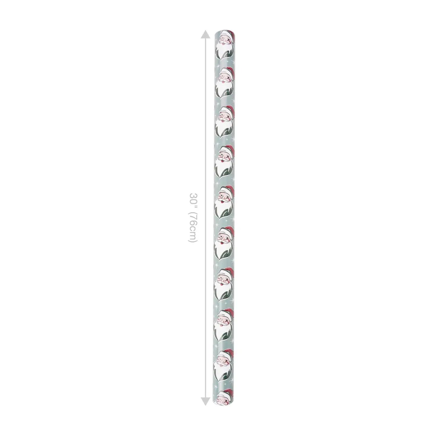 30" X 10' Reversible Holiday Wrapping Paper | Retro Santa Faces/Solid Green