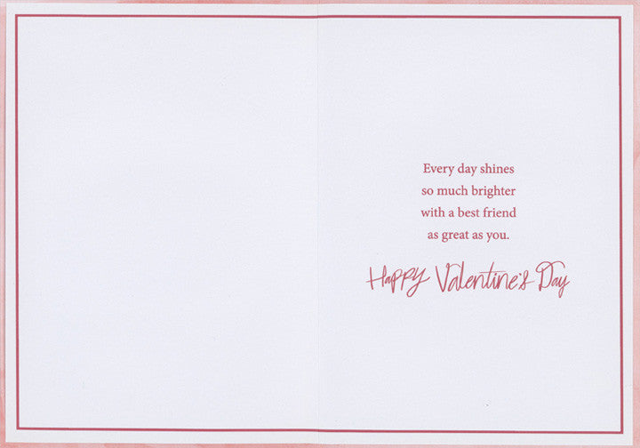 | Inside: | Every day shines so much brighter with a best friend as great as you. Happy Valentine's day |