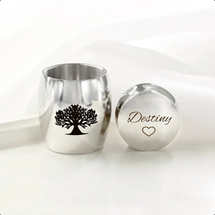Our stainless steel tree of life mini urns are available in silver, gold, rose gold, and black. Each urn features a tree of life engravings, offering a heartfelt tribute to your loved ones. Perfect for holding a small amount of ashes, these urns can be personalized with custom engravings. They provide a meaningful way to honor your loved ones, making them ideal for wholesale orders seeking quality and sentimentality.