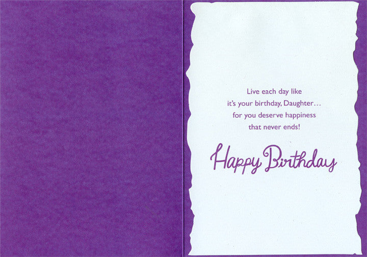 | Inside: | Live each day like it's your birthday, Daughter… for you deserve happiness that never ends! Happy Birthday |