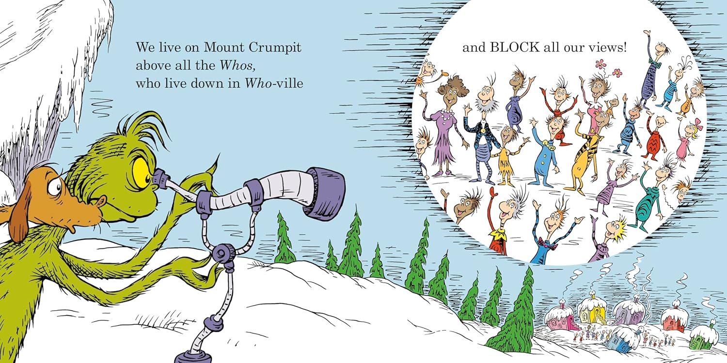 Join the Grinch in this simple, sturdy board book as he shares some of the silly things he DOESN'T like—including games, showers, flowers, and canned Who-Hash—before revealing the ONE thing he likes very much: spending time with a friend and growing his heart! Written in rhymed verse, it's the perfect choice for babies and toddlers. Now everyone in the family can get to know (and love) the Grinch!