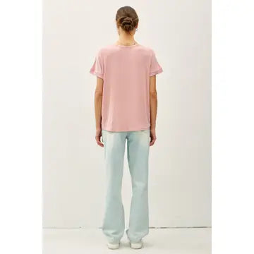 Ultra soft, ultra lightweight basic, flowy tee w/ rolled sleeve