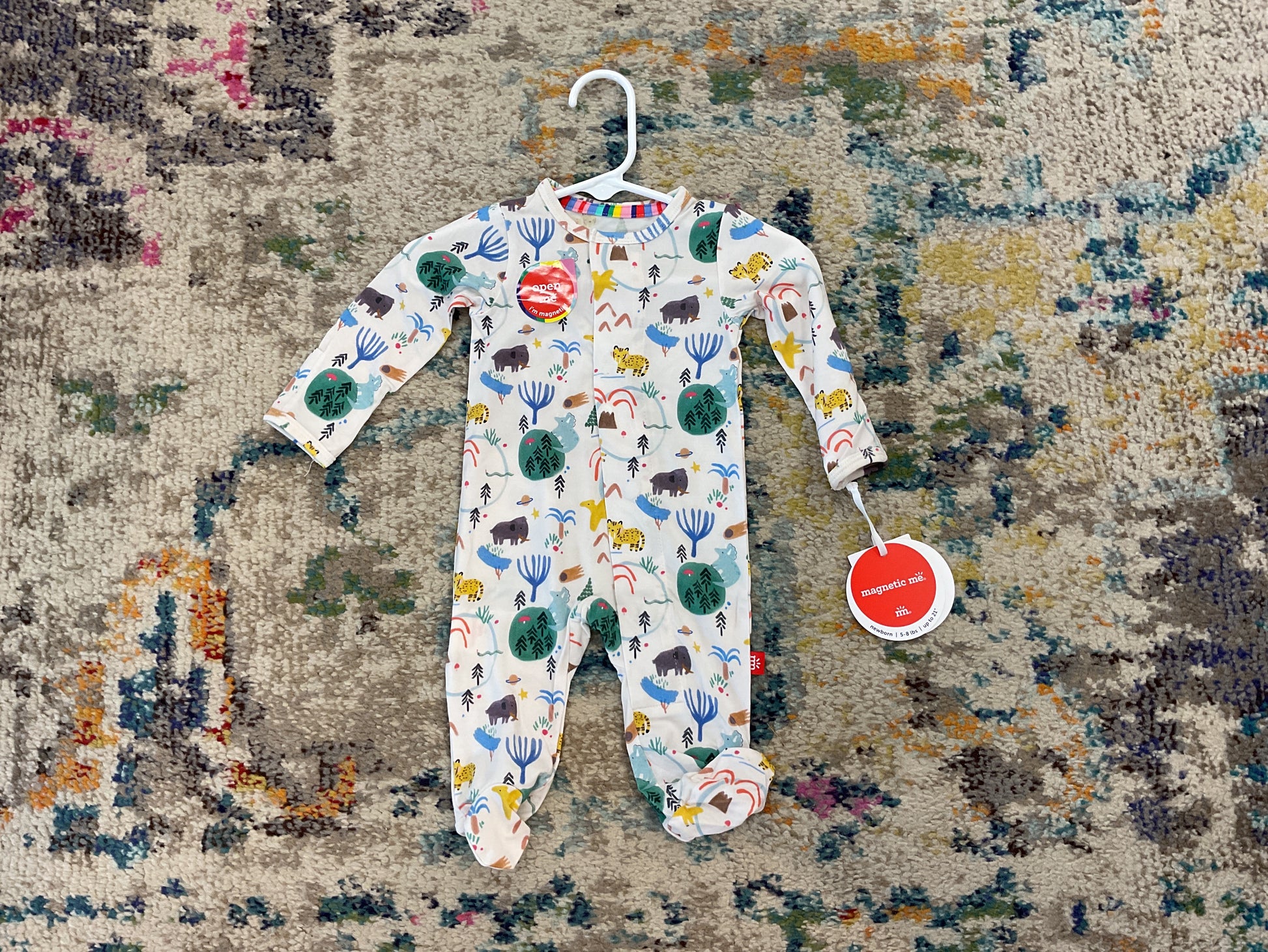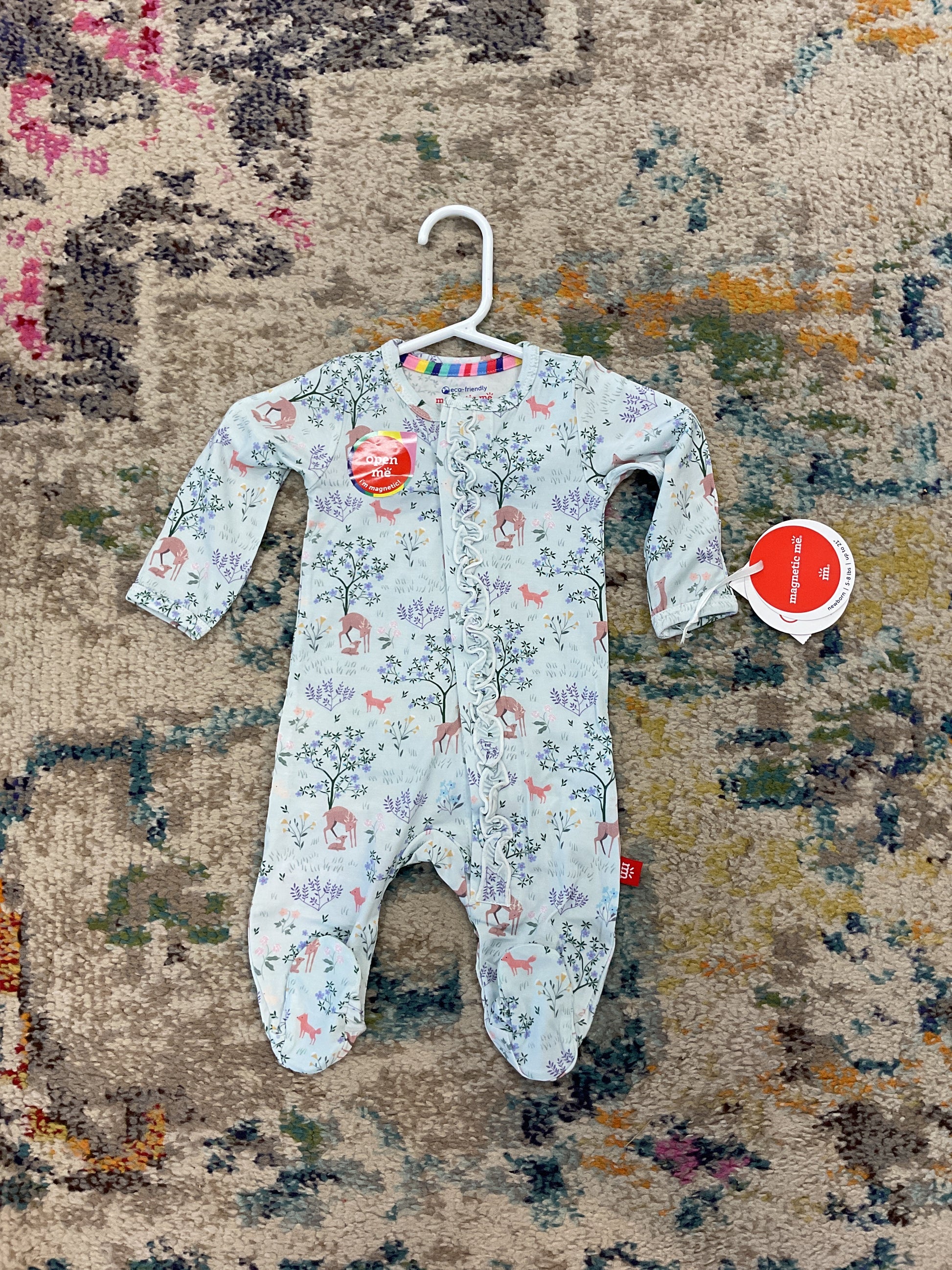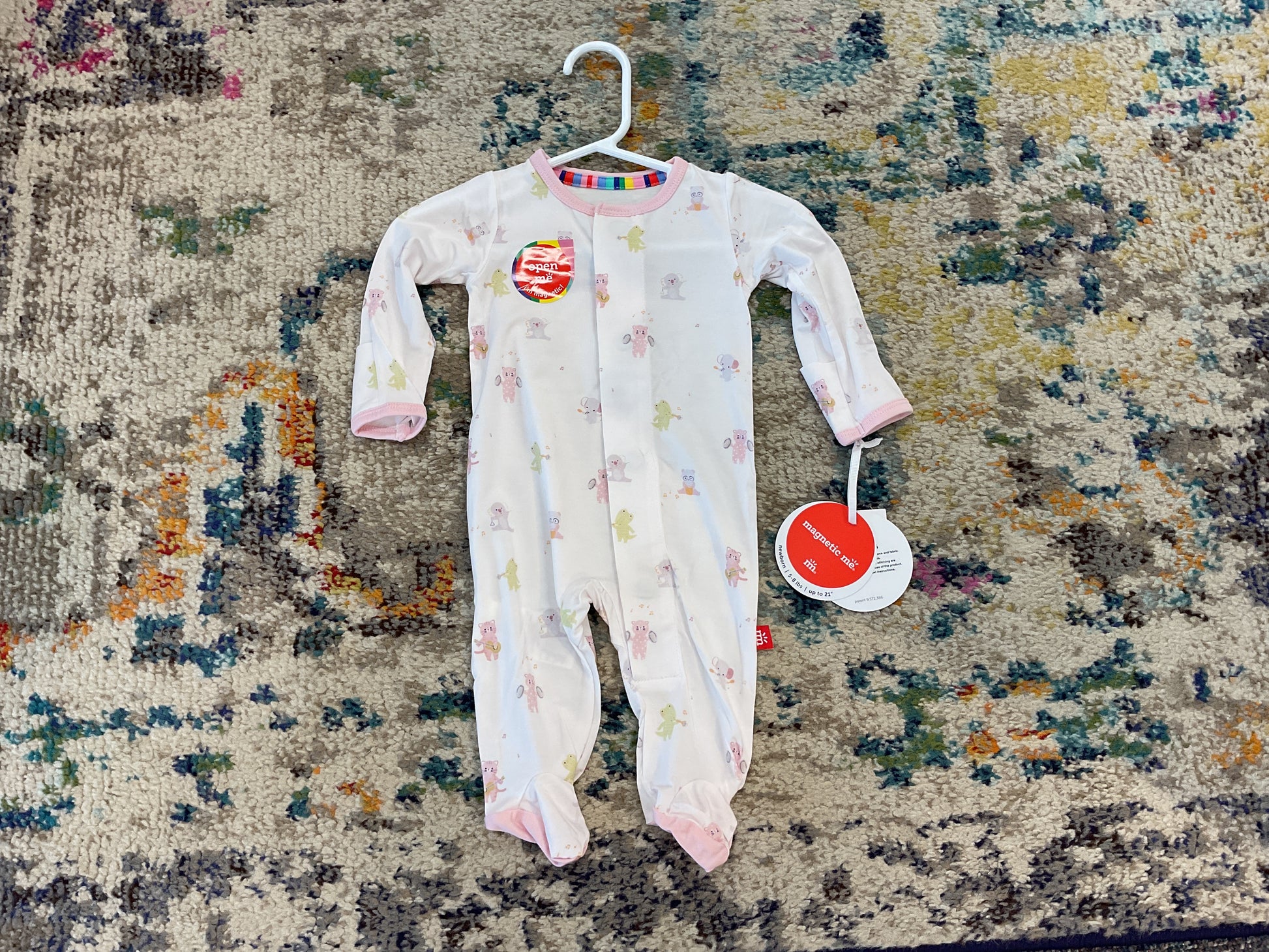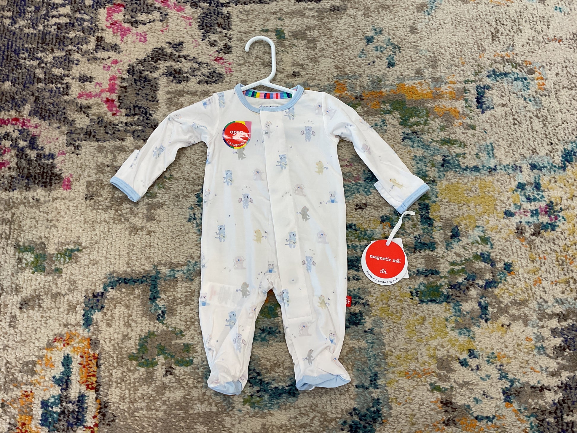 - magnetic closures: magnets line the seam from the neck to upper thigh for sizes up to 0-3m & from neck to crotch for sizes 3-6m and up.