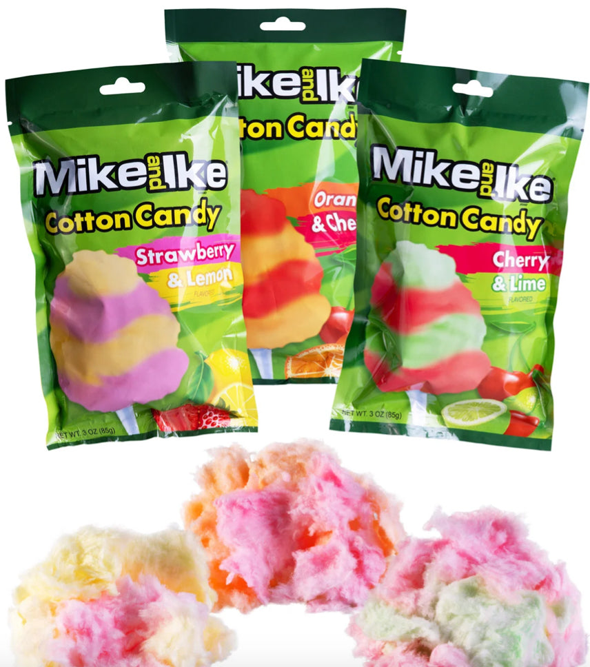 Enjoy the infamous fruit chews, minus the chew as Mike & Ike Cotton Candy recreates your favorite tubular treats in a fun, fluffy form!