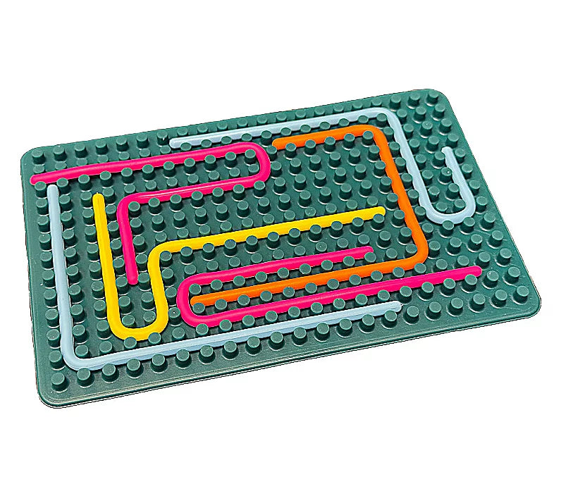 Little hands will stay busy and minds inspired with this double-sided sensory activity board, designed to spark imagination whether at home or on the go. Featuring flexible silicone strings in vibrant hues, this engaging arts and crafts toy encourages fine motor skill development and creative playtime. From E-Blox.